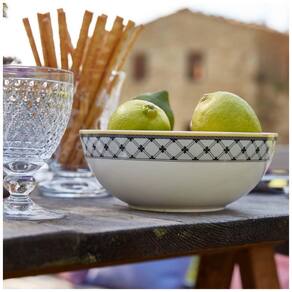 Esta tigela de porcelana premium da Villeroy Boch apresenta uma linda decoração floral divertida, perfeita para servir pratos frios e quentes de todos os tipos. Com capacidade para grandes porções, é ideal para ensopados substanciosos, saladas crocantes, pratos de batata ou massas. Além disso, seu formato prático permite que seja empilhada, economizando espaço e tornando-a adequada para serviços de buffet.