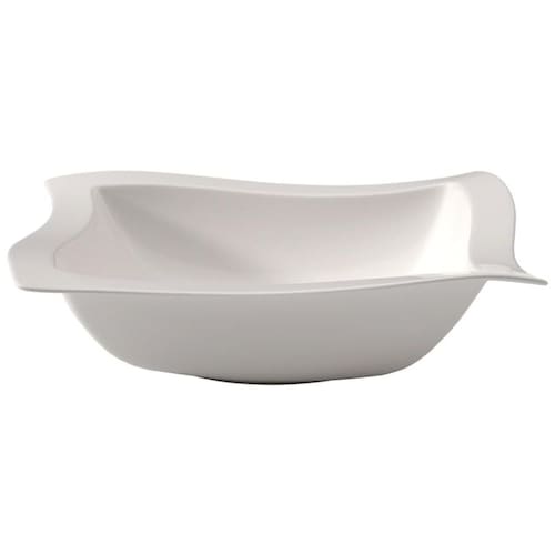 A Tigela Quadrada New Wave da Villeroy Boch é perfeita para servir pratos menores, como sopas, saladas ou sobremesas, com estilo e elegância no dia a dia. Seu formato profundo também a torna ideal para ensopados e acompanhamentos. Com um design moderno e ergonômico, a tigela é empilhável e possui bordas resistentes a choques e impactos, sendo adequada para serviços de catering. A porcelana branca leitosa, com suas linhas fluidas e bordas curvas, destaca perfeitamente os alimentos ou bebidas servidos. Com dimensões de 33 x 33 cm e 8,5 cm de altura, a tigela apresenta curvas estéticas que criam uma sensação de movimento quando vistas de todos os ângulos. Feita de porcelana vitrificada com esmalte resistente a lascas, é durável e pode ser lavada na máquina de lavar louça, no micro-ondas e em fornos de até 200 °C. A Tigela Quadrada New Wave é uma peça de louça magnífica que traz distinção a qualquer refeição!