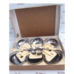 Tigela De Sobremesa De Inox Com Colher Kit Com 12 Pecas Delicias - Bravinox Tigela De Sobremesa De Inox Com Colher Kit Com 12 Pecas Delicias Um bom almoço sempre acaba com uma bela sobremesa. Com a Tigela De Sobremesa De Inox você estará preparado para este momento e não precisará improvisar na escolha dos recipientes. Informações Adicionais: Ean: 7899793300526 Validade: Indeterminada Tamanho Aproximado da Caixa: A:23xl:31cm Peso Aproximado: 320g Tipo de Produto: Conjunto de Tigela para Sobremesa Delicias Com 12 Unidades na Caixa Cor: Prata Composição: Inox e Plastico Ean: 7899793300526