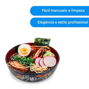 Nossa tigela japonesa udonbati é um utensílio de cozinha que oferece praticidade e durabilidade. Feita de melamina, um tipo de plástico resistente, essa tigela é uma opção popular em cozinhas domésticas, bem como em ambientes comerciais, como restaurantes e cafeterias. Observação: importante notar que a melamina não é adequada para uso em micro-ondas, pois pode derreter ou liberar substâncias nocivas quando aquecida. Portanto, é melhor reservar essas tigelas para servir alimentos frios ou para tarefas que não envolvam aquecimento.