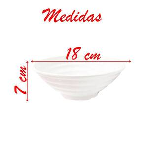 Tigela em melamina, um tipo de plástico duro com maior qualidade, durabilidade e resistência, lavagem e principalmente transporte, pois garante a segurança do usuário em possíveis quebras ou lascas. Essas características fazem da melamina um material bem popular, como muitos plásticos, a melamina não deve ser levada ao micro ondas, devido ao risco de danificar o material e o perigo de vazamento de toxinas para o alimento.
