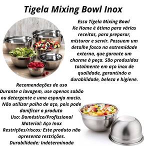 Essa Tigela Mixing Bowl Ke Home é ótima para várias receitas, para preparar, misturar e servir. Possuem um detalhe fosco na extremidade externa, que garante um charme à peça. São produzidos totalmente em aço inox de qualidade, garantindo a durabilidade, beleza e higiene.
