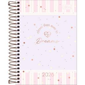 - Bolsa: de papel decorada. - Capa: dura. - Capa acabamento: com detalhe metalizado. - Conteúdo: Controle financeiro, Metas e objetivos e Página para planejamento do futuro. - Cor: diversas. - Espiral: Colorido. - Folhas: decoradas. - Formato: 129mm x 187mm. - Gramatura: 63 g/m². - Material: Capa Dura Com Acabamento Metalizado. - Número de folhas: 176 folhas. - Parte interna da capa decorada: Sim. - Produto certificado: FSC. - Visão: diária exceto sábado e domingo.