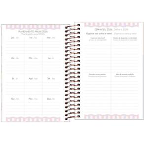 - Bolsa: de papel decorada. - Capa: dura. - Capa acabamento: com detalhe metalizado. - Conteúdo: Controle financeiro, Metas e objetivos e Página para planejamento do futuro. - Cor: diversas. - Espiral: Colorido. - Folhas: decoradas. - Formato: 129mm x 187mm. - Gramatura: 63 g/m². - Material: Capa Dura Com Acabamento Metalizado. - Número de folhas: 176 folhas. - Parte interna da capa decorada: Sim. - Produto certificado: FSC. - Visão: diária exceto sábado e domingo.