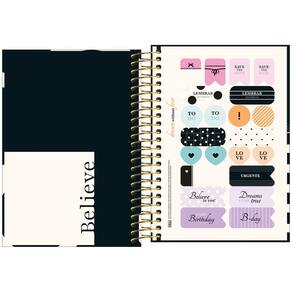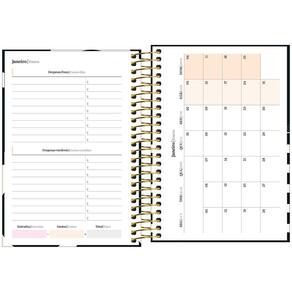 - Capa: dura. - Capa acabamento: com detalhe metalizado. - Conteúdo: Controle financeiro, Metas e objetivos, Página de listas e Página para planejamento do futuro. - Cor: diversas. - Espiral: Colorido. - Folhas: decoradas. - Formato: 129mm x 187mm. - Gramatura: 63 g/m². - Material: Capa Dura Com Acabamento Metalizado. - Número de folhas: 176 folhas. - Parte interna da capa decorada: Sim. - Produto certificado: FSC. - Visão: diária exceto sábado e domingo.
