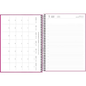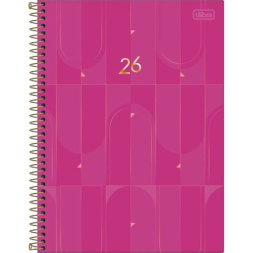 - Bolsa: plástica. - Capa: dura. - Capa acabamento: com detalhe metalizado. - Cor: diversas. - Formato: 200mm x 275mm. - Gramatura: 63 g/m². - Material: Capa Dura Com Acabamento Metalizado. - Número de folhas: 200 folhas. - Parte interna da capa decorada: Sim. - Planejamento anual: Sim. - Planejamento mensal: Sim. - Produto certificado: FSC. - Visão: diária.