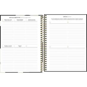 - Capa: dura. - Capa acabamento: com detalhe metalizado. - Conteúdo: Controle financeiro, Listas, Metas e objetivos e Página para planejamento do futuro. - Cor: diversas. - Espiral: Colorido. - Fechamento: com elástico. - Folhas: para anotações. - Formato: 177mm x 240mm. - Gramatura: 63 g/m². - Material: Capa Dura Com Acabamento Metalizado. - Número de folhas: 80 folhas. - Parte interna da capa decorada: Sim. - Produto certificado: FSC. - Visão: anual, mensal e semanal.
