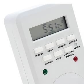 Timer Digital Bivolt Programável Tomada LCD 18 Eventos Transforme sua rotina com o Timer Digital Bivolt Programável Tomada LCD 18 Eventos, a solução prática e confiável para automatizar o uso de energia em ambientes residenciais e comerciais. Ideal para quem busca economia, segurança e praticidade, este temporizador inteligente permite controlar com precisão o funcionamento de diversos aparelhos elétricos, como luminárias, ventiladores, aquecedores, bombas de aquário e carregadores de eletrônicos. Com capacidade para programar até 18 eventos por dia e 20 programas semanais pré-ajustados, o Timer Digital oferece total flexibilidade para adaptar sua rotina conforme os dias da semana. Programe o acendimento automático de luzes ao entardecer, o desligamento de equipamentos durante a madrugada ou o funcionamento de dispositivos em horários específicos, evitando o desperdício de energia e prolongando a vida útil dos seus aparelhos. A tela LCD de fácil leitura permite visualizar e configurar os horários com agilidade, enquanto o plugue padrão NBR14136 garante compatibilidade com a maioria das tomadas residenciais. Fabricado em material ABS resistente e componentes elétricos de alta qualidade, o produto suporta corrente de até 10A e potência entre 1270w e 1500w, operando com eficiência em redes elétricas de 60Hz. Seu funcionamento é bivolt, o que proporciona versatilidade para uso em diferentes locais. Compacto e discreto, o Timer Digital possui dimensões aproximadas de 11,5cm de altura por 5,8cm de largura, podendo ser instalado facilmente em qualquer ambiente. A faixa de temperatura de operação entre -10 e 40 garante desempenho estável mesmo em condições variadas. Com o temporizador programável, você evita sobrecargas, reduz o consumo desnecessário e protege seus equipamentos contra uso excessivo. Este produto acompanha 01 unidade de Timer Digital Programável, pronto para uso imediato. É uma excelente escolha para quem valoriza controle, eficiência e confiabilidade no dia a dia. Seja para automatizar tarefas domésticas ou otimizar processos no escritório, o Timer Digital Bivolt é um aliado indispensável na gestão inteligente de energia. Além de todos esses benefícios, o Timer Digital conta com de 3 meses contra defeitos de fabricação, oferecendo mais tranquilidade e segurança na sua compra. Adquira agora e experimente o poder de controlar seu tempo e sua energia com precisão e confiança.