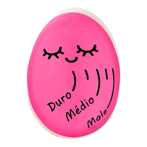 Timer Para Cozimento De Ovos Temporizador Tempo Certo - Rosa - timer de ovo cozido no ponto certo O timer indicador para ovos funciona de maneira bem simples. Para utilizá-lo, basta colocá-lo junto aos ovos que serão cozidos, quando a água começar a ferver, a cor do centro do timer começará a diminuir, passando pelos pontos marcados: mole, médio e duro. Estes pontos indicam o estágio de cozimento dos ovos, ou seja, basta você escolher qual o ponto de seu ovo e desligar o fogo quando a cor o timer passar por ele. Por ser em resina atóxica, o timer suporta tranquilamente altas temperaturas além de ser extremamente fácil de limpar e armazenar. Por fim, o timer para ovos é um item indispensável para a sua cozinha, garantindo um cozimento certo Tamanho: 5,5 x 4 cm Material: resina atóxica Cor Rosa Ean: 7907141830806