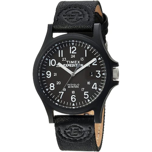 Este relógio de acampamento da Expedição Timex, limpo, simples e de inspiração militar, não mudou muito desde 1918. Fizemos um pouco mais leve, adicionamos uma cinta fast wrap de nylon com prendedor, e nossa assi Indiglo luz noturna.