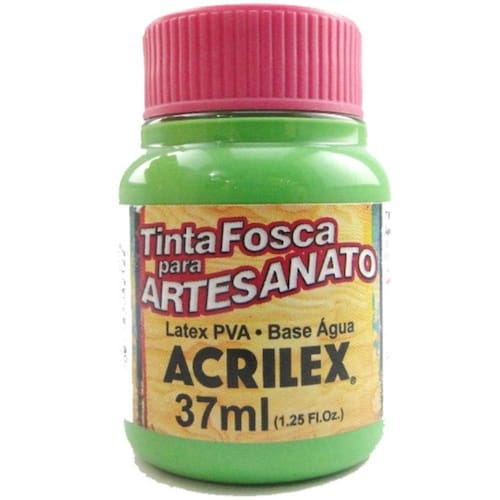Pva tinta fosca para artesanato características a base de látex p.v.a. secagem rápida. acabamento fosco. pronta para uso modo de usar pode ser aplicada com pincel, esponja ou rolinho de espuma. auxiliares diluente: água. gel para matizar, médium acrílico, verniz acrílico, lacas, acrilfix e base acrílica para artesanato. uso específico ideal para trabalhos artesanais sobre madeira, gesso, mdf, cerâmica, cortiça, isopor, papel, palha e pet preparado antes com primer acrilex .