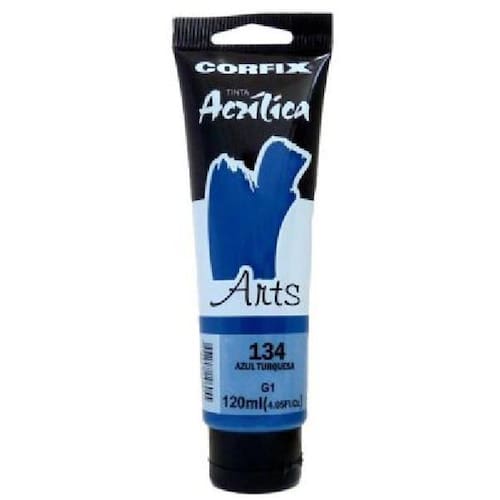 Tinta Acrílica Arts Azul Turquesa 134 120ml Especificações: Marca: Corfix Linha: Arts Quantidade: 120ml Por Tubo Informações Adicionais: A Tinta Acrílica Arts possui um acabamento uniforme e acetinado, o qual é o preferido pela maioria dos artistas que trabalham com acrílico. Após secagem, apresenta uma película elástica e extremamente resistente aos vários suportes. Esta linha de tinta acrílica disponibiliza cores essenciais à paleta básica, as quais não se consegue com mesclas, passando por cores formuladas a partir de pigmentos de qualidade para artistas. Ficha técnica - Set: Não - Tipo de embalagem: Tubo - Superfícies recomendadas: Tela - É à prova d'água: Não - cor: azul - Cor principal: Azul - Conteúdo líquido: 120ml
