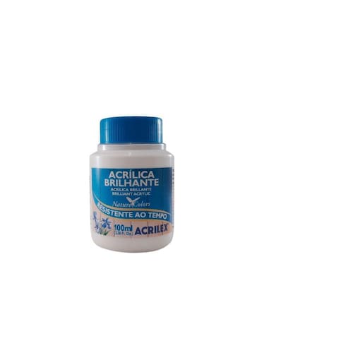 Tinta Acrílica Brilhante Branco 519 Acrilex 100Ml Tinta Acrílica Brilhante Acrilex 100ml Resistente ao tempo sol e chuva . Ideal para ser aplicada sobre: madeira, cerâmica, gesso, isopor, cortiça, couro, vidro e plásticos jateados, alumínio, latão e zinco, sempre com fins decorativos. Apresentada em 20 cores miscíveis entre si, possui acabamento brilhante, não havendo necessidade de aplicação de verniz. Caso seja diluída, pode perder o brilho. Nesse caso, é necessário aplicar mais de uma camada de tinta para obter o resultado desejado. Fabricante: Acrilex Marca: Não Informado
