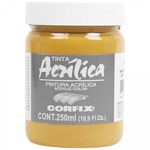 Tinta Acrílica Corfix Amarelo Ocre 53 G1 250ml A tinta acrílica foi elaboradas com matérias primas selecionadas que lhe confere grande desempenho. Os pigmentos utilizados são de ótima solidez à luz e resistentes a agentes atmosféricos. A combinação de resinas acrílicas, solúveis em água, confere à Tinta Acrílica, após secagem, uma película elástica, brilhante e extremamente resistente aos vários suportes. A preservação contra microrganismos da tinta como da obra, já pronta, é feita através de fungicidas e bactericidas criteriosamente selecionados. A Tinta Acrílica CORFIX é solúvel em água, suas cores são miscíveis entre si. Tem secagem rápida. Diluída em água, obtem-se efeito aquarelado possibilitando também sua utilização em aerografia. É um produto que apresenta uma consistência suave e amanteigada Que permite técnicas com utilização de pincel e ou espátulas. Ficha técnica - Superfícies recomendadas: Tela - Tipo de embalagem: Pote - Conteúdo líquido: 250 - Marca: Corfix - Cor: Amarelo Ocre