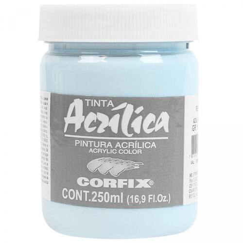 Tinta Acrílica Corfix Azul Real 70 G1 250Ml A tinta acrílica foi elaboradas com matérias primas selecionadas que lhe confere grande desempenho. Os pigmentos utilizados são de ótima solidez à luz e resistentes a agentes atmosféricos. A combinação de resinas acrílicas, solúveis em água, confere à Tinta Acrílica, após secagem, uma película elástica, brilhante e extremamente resistente aos vários suportes. A preservação contra microrganismos da tinta como da obra, já pronta, é feita através de fungicidas e bactericidas criteriosamente selecionados. A Tinta Acrílica CORFIX é solúvel em água, suas cores são miscíveis entre si. Tem secagem rápida. Diluída em água, obtem-se efeito aquarelado possibilitando também sua utilização em aerografia. É um produto que apresenta uma consistência suave e amanteigada Que permite técnicas com utilização de pincel e ou espátulas.