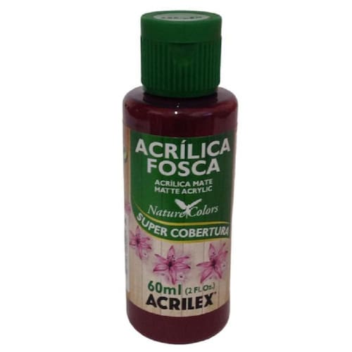 TINTA ACRÍLICA FOSCA CARACTERÍSTICAS Secagem rápida. Pode ser lixada. Excelente aderência. Pronta para uso. MODO DE USAR Pode ser aplicada com pincel, rolinho de espuma ou esponja. Dispensa preparação prévia do fundo exceto vidro e PET . AUXILIARES Para dar acabamento pode ser utilizado Verniz Acrílico Brilhante ou Fosco, Acrilfix, Lacas ou Verniz Geral. Tinta acrílica de super cobertura. Ideal para trabalhos de artesanato. Pode ser aplicada em diversos materiais como: madeira, papel, cerâmica, isopor, gesso, couro, cortiça, vidro e PET preparados com Primer Acrilex . Ean: 7891153080291