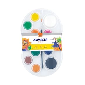 Tinta Aquarela em Pastilha Estojo 12 Cores Vibrantes com Pincel - Brw | Papelaria | Colorir | Pintar | Material Escolar