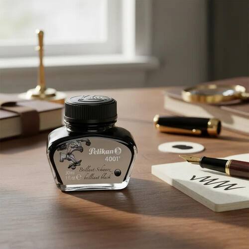 Preto - Redescubra o prazer da escrita à mão com a Tinta Pelikan 4001, a escolha clássica que transforma cada traço em uma obra de arte. Transforme sua experiência de escrita com a qualidade inigualável da Pelikan 4001: Cores Ricas e Duradouras: Escolha entre 8 tons vibrantes: Preto Brilhante, Black Blue, Azul Royal, Azul Turquesa, Vermelho, Verde Escuro, Marrom Brilhante e Violeta. Fluidez Excepcional: Desenvolvida para máxima liquidez, garante um fluxo contínuo sem entupir ou manchar sua preciosa caneta tinteiro. Escrita Nítida e Expressiva: Obtenha traços definidos e uma escrita forte, refletindo sua personalidade em cada palavra. Qualidade e Segura: Uma fórmula refinada com mais de cem anos de aprovação, sinônimo de confiabilidade. Frasco Prático de 30ml: Perfeito para o uso diário e para experimentar diversas cores. Especificações Técnicas: Marca: Pelikan Linha: 4001 Capacidade: 30ml Composição: Tinta à base de água Origem: Fabricado na Alemanha Cores Disponíveis: Preto Brilhante, Black Blue, Azul Royal, Azul Turquesa, Vermelho, Verde Escuro, Marrom Brilhante e Violeta. Eleve sua caligrafia a um novo patamar. Adquira já sua Tinta Pelikan 4001 e sinta a diferença em cada palavra Marca: Não Informado