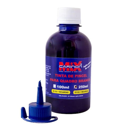Tinta para marcador de quadro branco Cor: azulTinta especial para pincéis de quadro branco de todas as marcas e modelos - não mancha os quadros;- fácil remoção;- cores fortes e vivas para melhor visualização;- frasco com bico aplicador para facilitar a injeção nos refis e pincéis.Valor referente a 250 ml azulTemos também nas cores: azul, vermelho, verde, preto, violeta e laranjaMarca: carinon mixObs: caso queira mais de 1 cor coloque quantas unidades quiser em seguida assim que finalizar a compra nos envie uma mensagem escolhendo as cores.