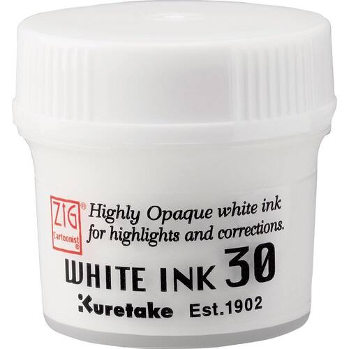 ZIG A tinta branca é pigmento à base de água e altamente opaca. Ideal para destaques ou correções, a tinta branca cobre bem outras marcações e aparece distintamente em superfícies escuras. Fácil de usar com um pincel ou caneta de mergulho.