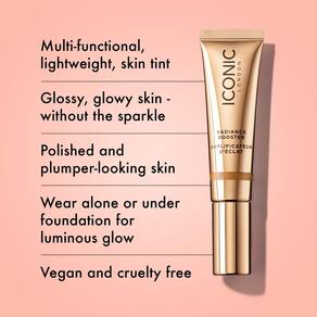 - Nossa primeira base transparente de rosto inteiro combina propriedades semelhantes a filtros para uma pele digna de selfie. O Radiance Booster é tudo o que você precisa para uma pele impecável, fresca e radiante – deixe a beleza da sua pele brilhar! O Radiance Booster não contém glitter ou partículas brilhantes, o que significa que você fica com aquele acabamento brilhante e brilhante - sem o brilho.