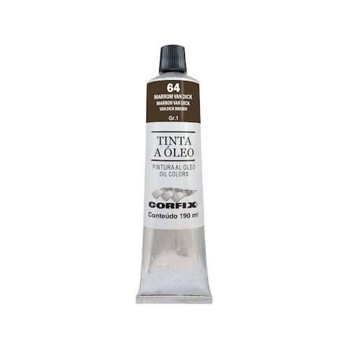 Tinta óleo Corfix é uma tinta de alta qualidade, com pigmentos concentrados e excelente resistência à luz. Ela é indicada para pinturas em tela, madeira, cerâmica, metal, entre outros materiais. A embalagem de 190ml é uma opção econômica para quem precisa de uma quantidade maior de tinta. É importante lembrar que a tinta óleo Corfix deve ser diluída em solvente adequado antes de ser aplicada, e que o tempo de secagem pode variar de acordo com a espessura da camada aplicada. Número da Cor: 64 Grupo: 1 Transparência: Opaco Resistência à Luz: Excelente Pigmentos: PR101 / PBk7