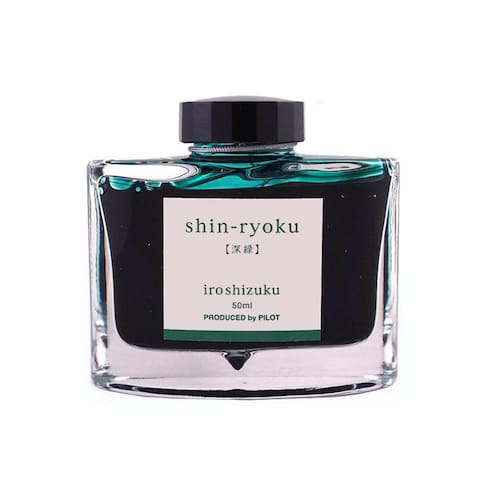 Tinta Para Caneta Tinteiro Pilot Iroshizuku 50Ml Shin-RyokuIroshizuku é uma linha de tintas luxuosas criada pela Pilot para refletir o cenário de belezas naturais do Japão. Os maravilhosos tons vão preencher a sua caneta tinteiro com vividez e elegância. Cada frasco de vidro é minuciosamente criado e contém uma inovadora saliência no fundo do recipiente para que até a última gota de tinta seja aproveitada. Frascos de 50mL.Cor: Shin-RyokuOrigem: Japão