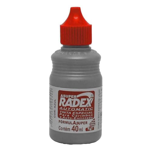 Tinta para Carimbo Automatic Vermelho Radex 40ml Descrição- Tinta para carimbo auto-entintado. - Quando seu carimbo estiver falhando, retire o refil e adicione uma gota da tinta Automatic sobre o tecido. É suficiente para reativar o funcionamento do mesmo. - Automatic é a tinta de tecnologia avançada de última geração. É ideal para reativar todos os modelos de carimbos auto-entintados. - Composição da tinta: água, glicerina, corantes, glicóis e aditivos. - Conteúdo: 40ml. - Cor: vermelho.