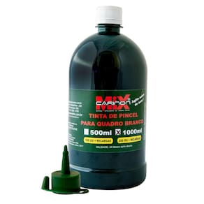 Tinta de pincel para quadro branco, reabastece todos os modelos e marcas. Marca: Carinon MixO produto: - Não mancha os quadros,- Fácil remoção,- Cores fortes e vivas para melhor visualização,- Frasco com bico aplicador para facilitar a injeção nos refis e pincéis,- 200 recargas.Ideal para: Uso comercial, escolar. Para pincel marcador de quadro branco.Dimensões: Compr. 160 mm - Larg. 95 mm - Diâm. 290 mm.Embalagem: 1 unidade de 1 litroCor: Verde