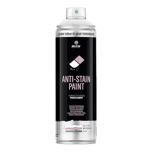 A tinta spray MTN PRO Anti-Stain é formulada com resinas acrílicas de alta qualidade, dióxido de titânio e aditivos. O resultado é uma tinta de alta cobertura, perfeita para uma cobertura rápida e duradoura de manchas nas paredes. Devido às características deste produto, recomendamos usá-lo para acabamentos finais ou como base para outras tintas. Características - Secagem rápida - Boa adesão - Excelente poder de cobertura. - Não contém Cinza ou outros metais - pesado - Facilidade de aplicação e repintura. Marca: Não Informado