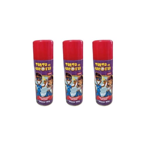 Esse kit contém: 3 tinta spray da alegria 150ml vermelho