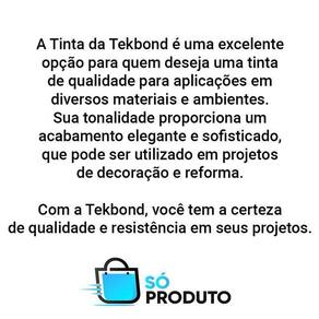Em resumo, a Tinta da Tekbond é uma excelente opção para quem deseja uma tinta de qualidade para aplicações em diversos materiais e ambientes. Sua tonalidade proporciona um acabamento elegante e sofisticado, que pode ser utilizado em projetos de decoração e reforma. Com a Tekbond, você tem a certeza de qualidade e resistência em seus projetos.