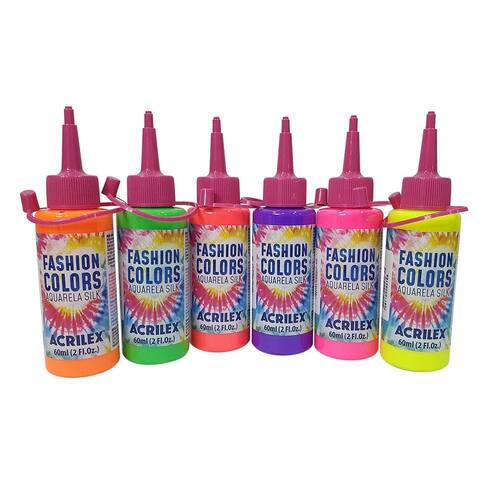 Tinta Tie Dye Aquarela Silk Acrilex kit com 6 frascos 60 mL - CORES NEON