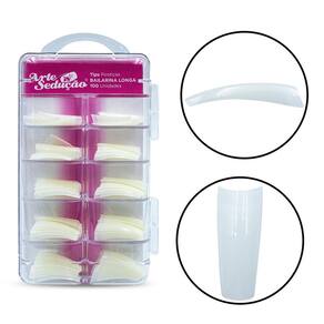 01 - Caixa Acrílica com 100 Unidades de Tips Unhas Postiças Formato Bailarina Longa, Arte Sedução