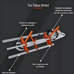 Diferenciais e CuriosidadesEntre os principais diferenciais do Tira Tábua Bristol, destacam-se a facilidade de acoplamento, o sistema de regulagem e proteção do sabre e a sua versatilidade. Uma curiosidade interessante é que este implemento permite que a mesma motosserra utilizada para cortes gerais se transforme rapidamente em uma serra portátil de tábuas, aumentando a produtividade e reduzindo a necessidade de múltiplas ferramentas.