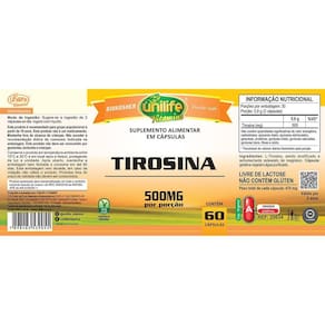 Tirosina unilife 60 cápsulas 470mg Modo de ingestão: sugere-se a ingestão de 2 cápsulas ao dia, ingeridas com líquido. Ingredientes: l-tirosina, amido modificado, antiumectante estearato de magnésio, cápsula: gelatina vegetal e água purificada. Não contém glúten. Livre de lactose. Peso total de cada cápsula: 470mg. Advertências: Este produto é recomendado para pessoas a partir de 19 anos. Não exceder a recomendação diária de consumo indicada na embalagem. Não deve ser consumido por gestantes, lactantes e crianças. Mantenha fora do alcance de crianças. Produto autorizado para comercialização em todo o território nacional através do anexo i da rdc 240/2018 da anvisa. Marca: Não Informado Ean: 7898483539055