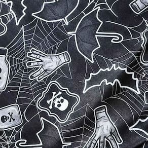 O TNT Estampado é uma ótima opção para ser utilizado de diversas formas em uma decoração de festa, podendo ser utilizado classicamente como toalha de mesas principal ou dos convidados, painel da mesa principal, painel de fundo para fotos. Você pode complementar com este TNT as festas do tema de Halloween.