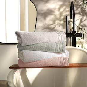 Da linha de Toalhas Luxo Altenburg, o modelo Duna está disponível nos tamanhos rosto e banho, com 4 opções: branco, bege, verde e rosa.