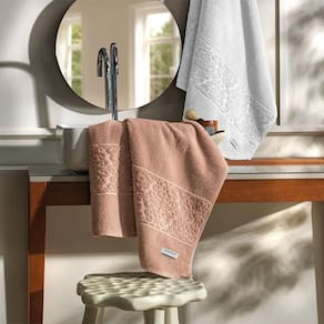 As Toalhas Galleria possuem design clássico, com barra em jacquard formando graciosos arabescos que dão um toque especial para as peças.