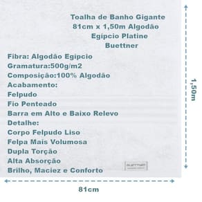 Conteúdo e Medidas: Toalha Tinto Banhão Algodão Egípcio - Platine - 01 Peça Tamanho(0,81cm x 1,50cm)