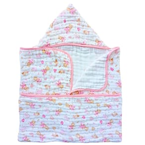A Toalha de Banho Soft com Capuz é perfeita para envolver o seu pequeno(a) com conforto e cuidado após o banho, na praia ou na piscina. Desenvolvida com 3 camadas de tecido fralda de algodão, ela oferece toque macio e delicado, ideal para a pele sensível do seu filho.