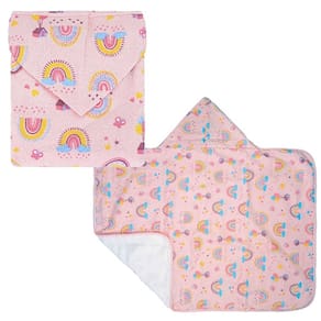 Toalha Banho Infantil Estampada Com Capuz Forro De Fralda 68cm x 68cm - Bublim Baby - ROSA