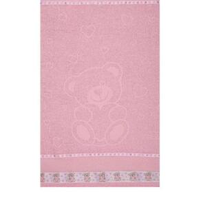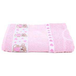 Características do Produto Tipo: Toalha de Banho infantil. Barra: Espaço para bordado em ponto cruz, ideal para personalizar com o nome ou desenhos. Composição: Tecido 100% algodão exceto efeito decorativo . Quantidade: 1 peça. Dimensão: 75cm x 110cm, tamanho perfeito para envolver e secar os pequenos com facilidade. Gramatura: 380g/m, garantindo ótima absorção e maciez. Cor enviada: Rosa.