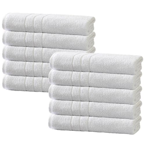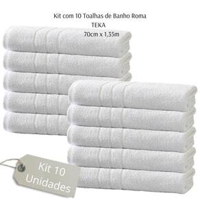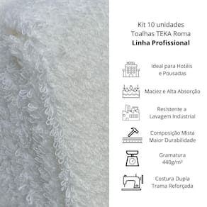 Composto por 10 peças, cada toalha de banho possui as medidas 0,70x1,35m e uma gramatura de 440g/m. Sua cor branca é versátil e combina com qualquer ambiente. Além disso, a toalha de banho roma é resistente à lavagem industrial e ao cloro, garantindo maior durabilidade.