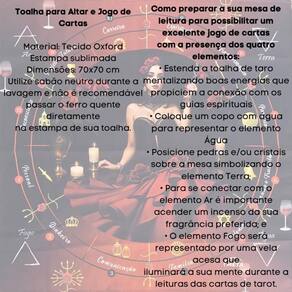A Toalha Baralho Tarot Pomba Gira da Bialluz é ótima para te auxiliar durante o jogo de cartas, por ser um elemento que proporciona alta elevação enérgica. Você também pode usar para decorar seu altar, com certeza ficara ainda mais lindo e com muita energia positiva. Nossa toalha possui altíssima qualidade na impressão com pontos de brilho e é confeccionada em tecido oxford que não amassa e tem longa durabilidade.