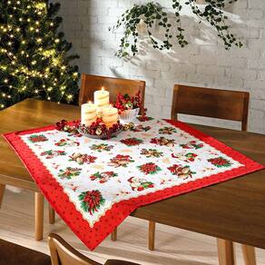 Marca: dohler Modelo: toalha centro de mesa Composição: 50% algodão 50% poliéster Gramatura: 170 gramas por metro quadrado Tamanho: 78 x 78 cm Estampa: natal Cor: vermelho / colorido