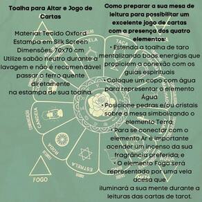 A Toalha Tecido Jogo de Cartas Cigana da Bialluz são ótimas para te auxiliar durante o jogo de cartas, por ser um elemento que proporciona alta elevação enérgica. Você também pode usar para decorar seu altar, com certeza ficara ainda mais lindo e com muita energia positiva. Nossa toalha possui altíssima qualidade na impressão com pontos de brilho e é confeccionada em tecido oxford que não amassa e tem longa durabilidade.