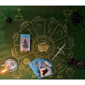 A Toalha Tecido Jogo de Cartas Cigana da Bialluz são ótimas para te auxiliar durante o jogo de cartas, por ser um elemento que proporciona alta elevação enérgica. Você também pode usar para decorar seu altar, com certeza ficara ainda mais lindo e com muita energia positiva. Nossa toalha possui altíssima qualidade na impressão com pontos de brilho e é confeccionada em tecido oxford que não amassa e tem longa durabilidade.