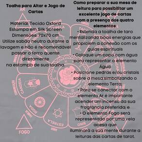 A Toalha Tecido Jogo de Cartas Cigana da Bialluz são ótimas para te auxiliar durante o jogo de cartas, por ser um elemento que proporciona alta elevação enérgica. Você também pode usar para decorar seu altar, com certeza ficara ainda mais lindo e com muita energia positiva. Nossa toalha possui altíssima qualidade na impressão com pontos de brilho e é confeccionada em tecido oxford que não amassa e tem longa durabilidade.