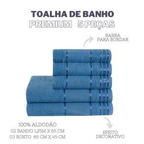 Adquira agora mesmo o Jogo de Toalha de Banho 5 Peças Premium Azul Jeans e deixe o seu banheiro ainda mais bonito, confortável e personalizado Ean: 7898742374472